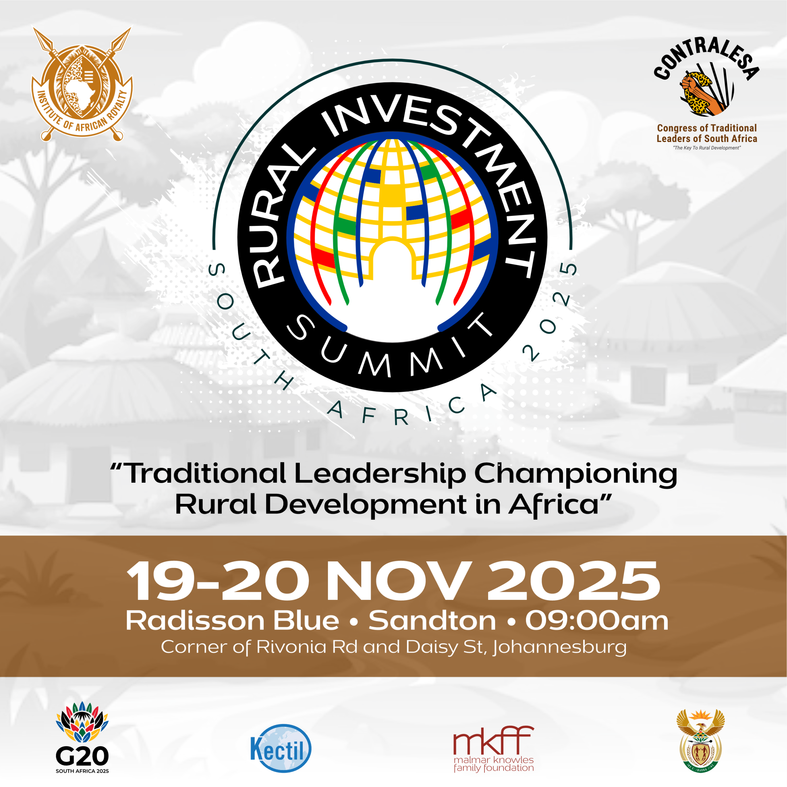 The Rural Investment Summit (RIS) is Africa’s foremost platform for advancing rural transformation, traditional leadership, and sustainable investment. Launching in South Africa as part of the G20 Summit 2025, the event unites traditional leaders, governments, investors, and innovators to chart a new path for Africa’s rural economies, rooted in culture, driven by innovation, and aligned with global progress.